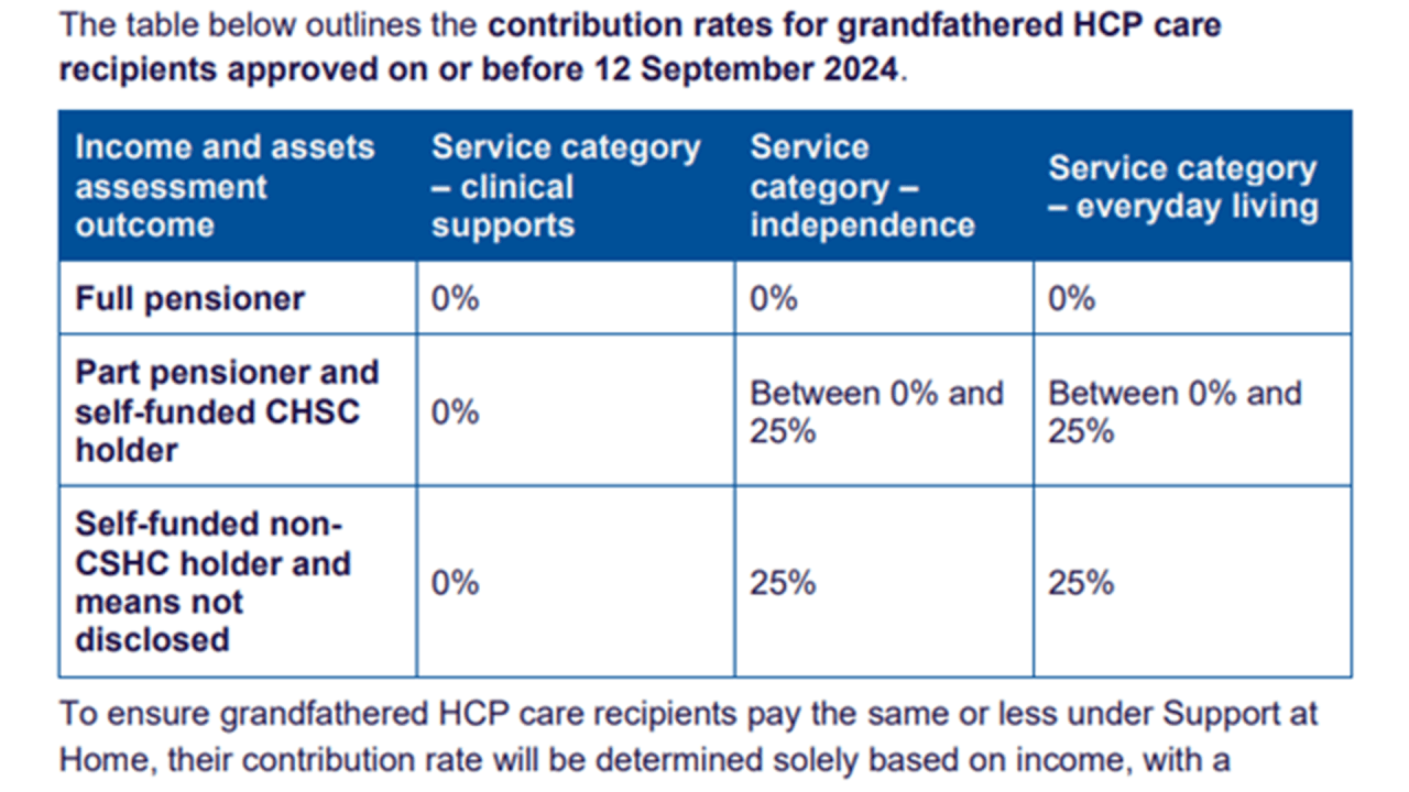 Many people make contributions towards their care under the old Home Care Package Program. Under the new Support at Home program, there will be changes to the way home care services are costed, which will depend on the type of services and when you enter the system.